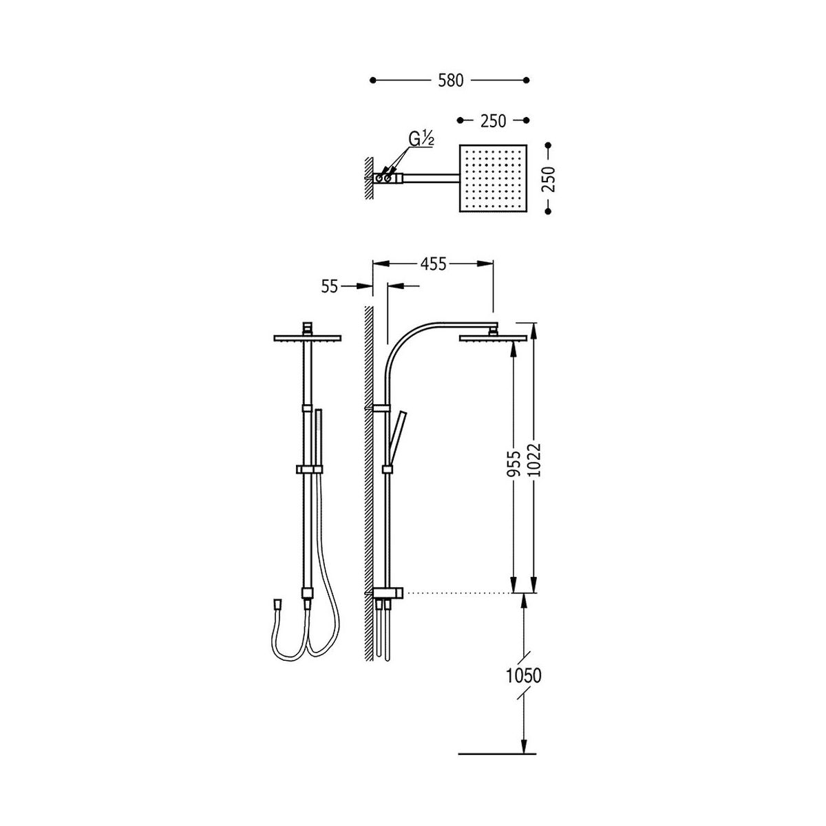 - Inbegriffen: Duschkopf, Duschkopf, Duschschlauch, Duschstange