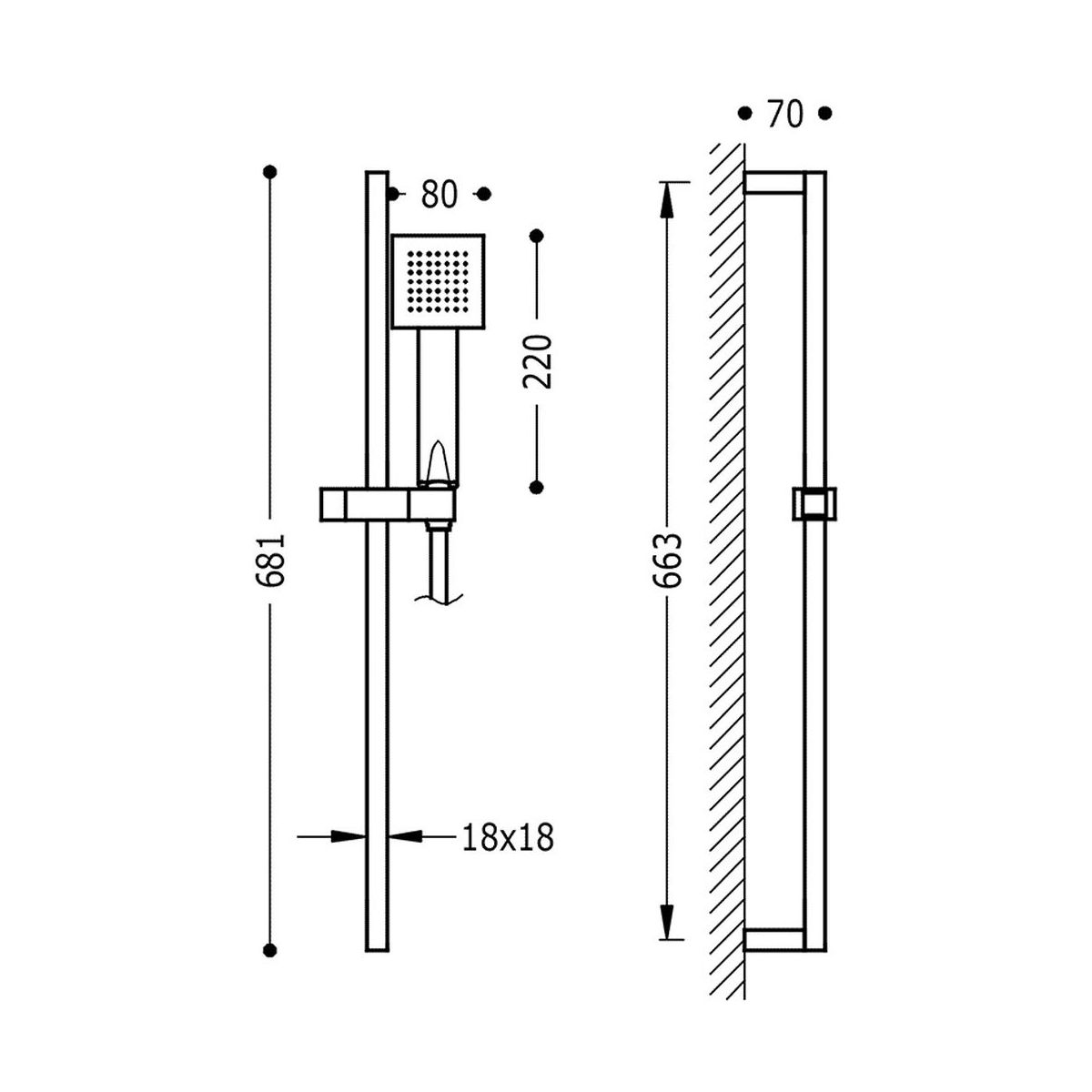 - Inbegriffen: Duschkopf, Duschschlauch, Duschstange