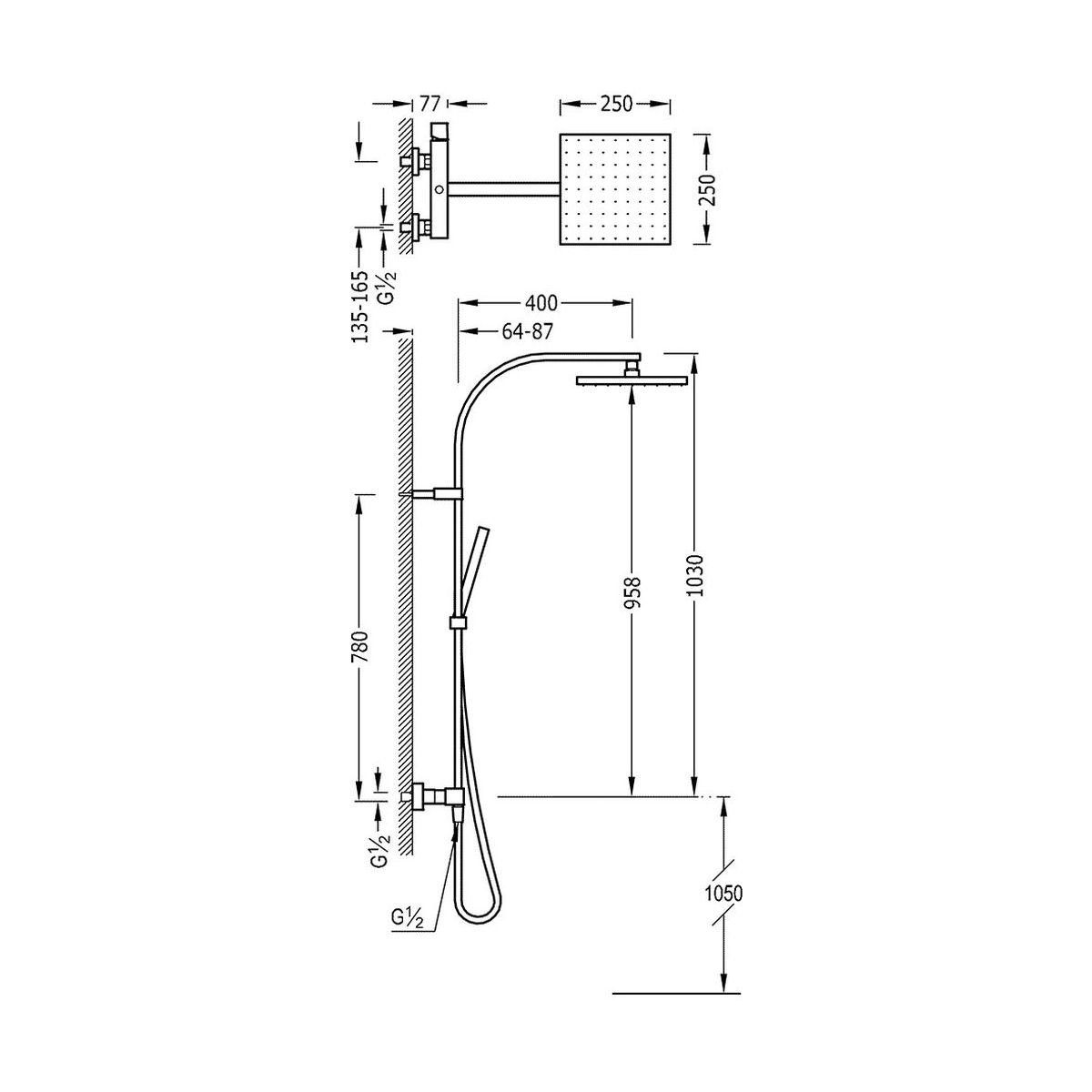 Tres Cuadro-Tres Duschset Wandmontage mit Regenbrause chrom 007.191.01
