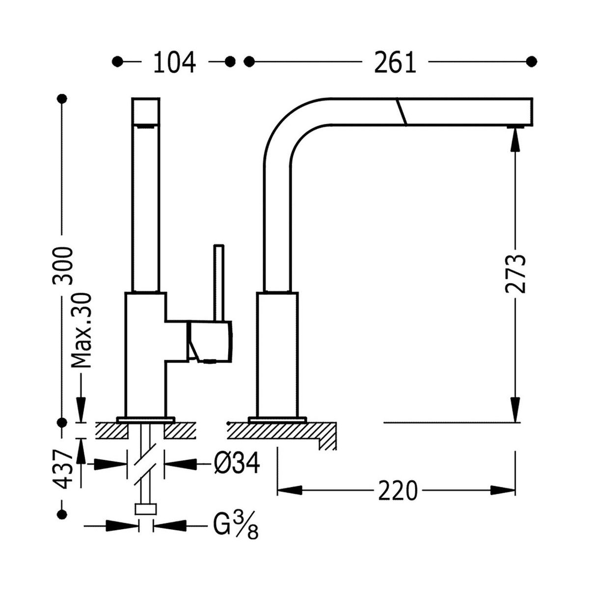 - Höhe der Armatur: 30 cm