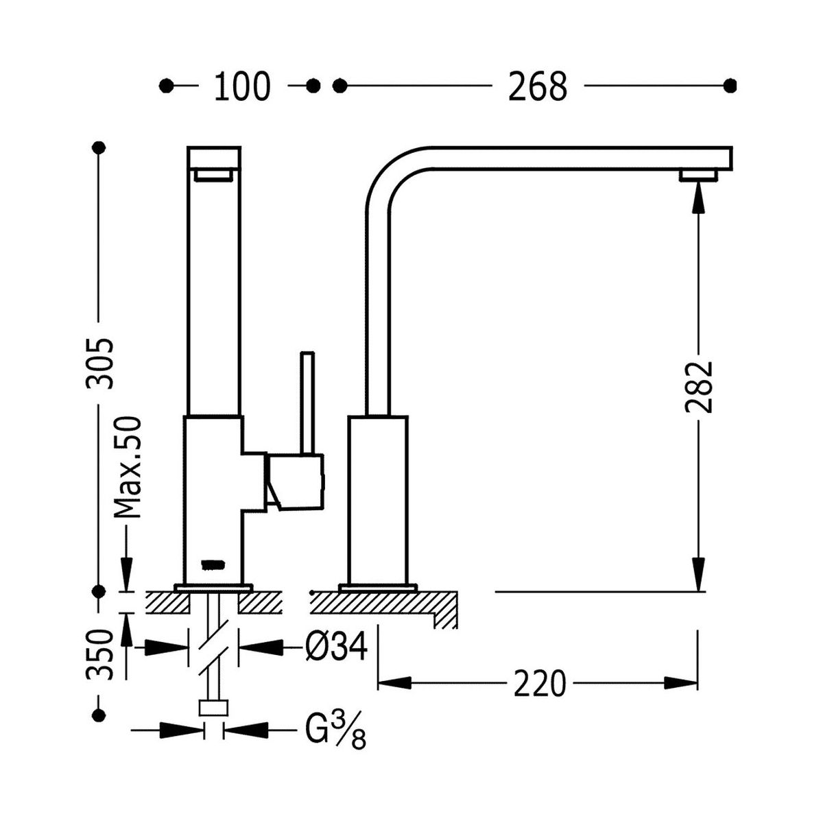 - Höhe der Armatur: 30,5 cm