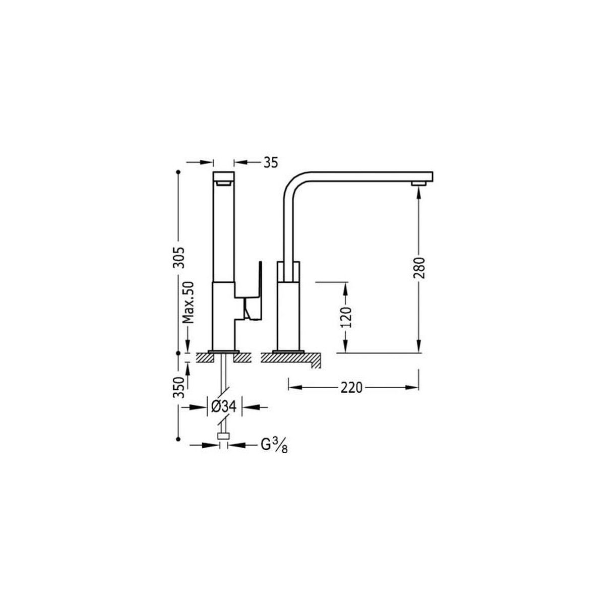 Tres Cuadro-Tres Waschtischarmatur Stehend chrom 1.06.604