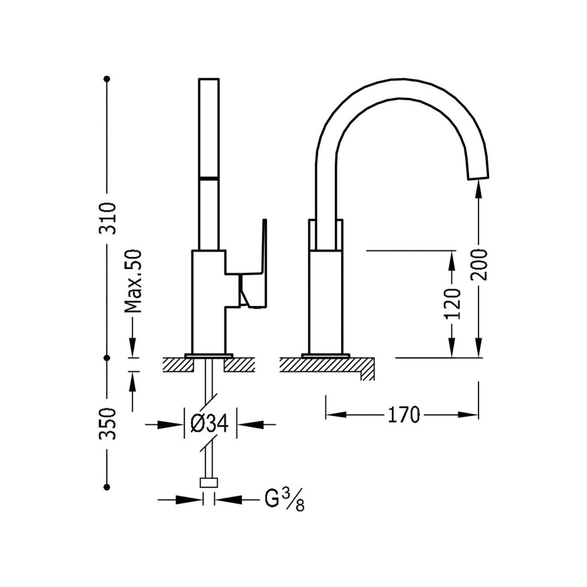 - Höhe der Armatur: 31 cm