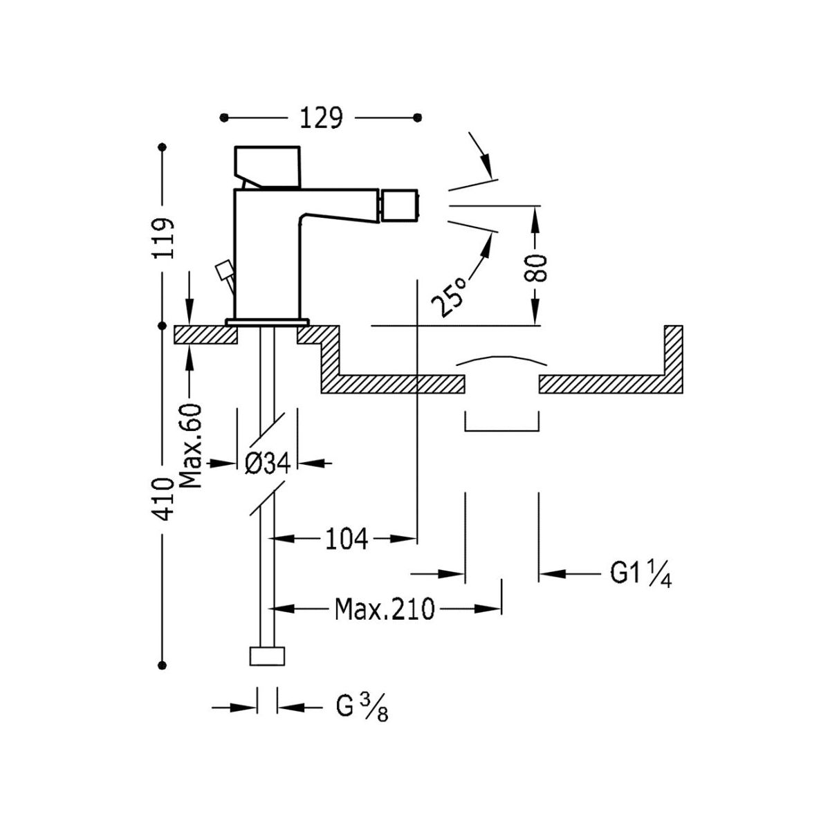 - Höhe der Armatur: 11,9 cm