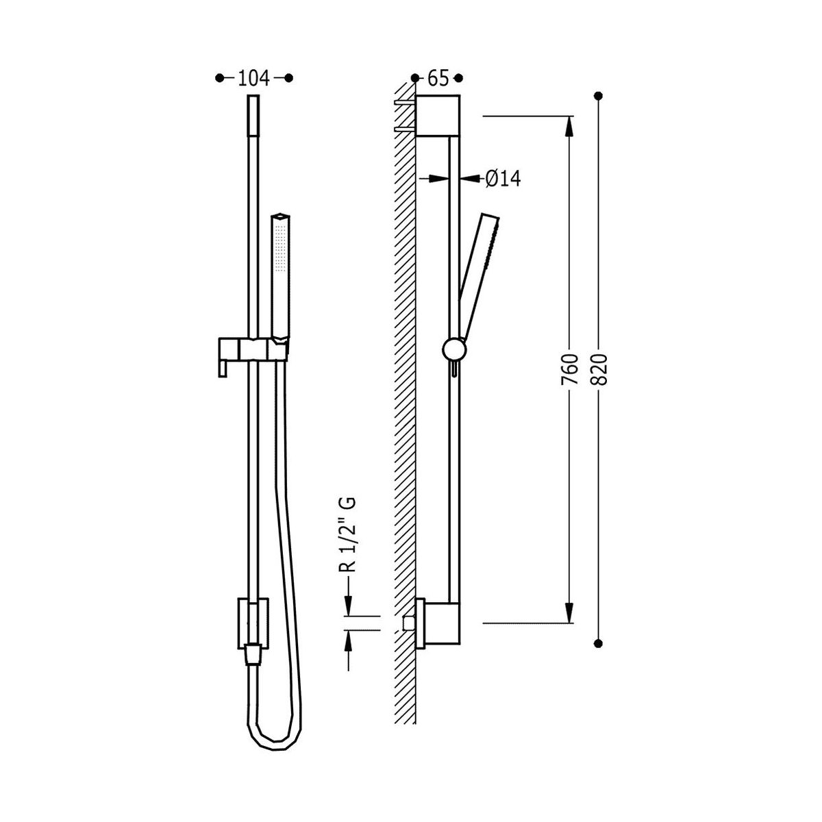 - Schiebestange mit Wasseranschluss in der Wand, Länge 76 cm