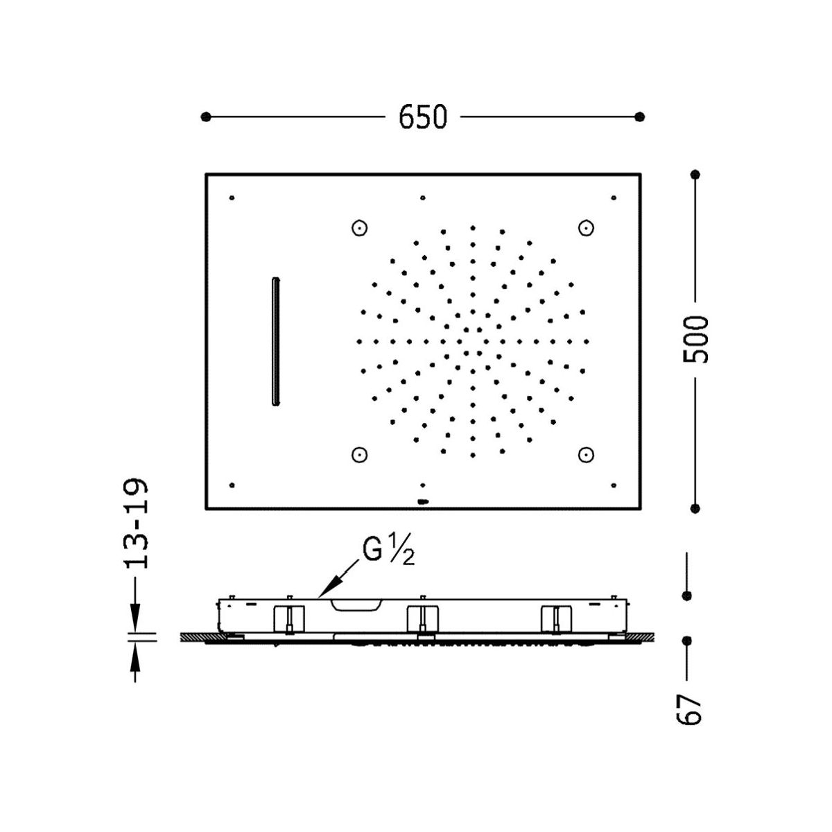 Tres Exclusive Kopfbrause 65x50 cm rechteckig chrom 299.971.01
