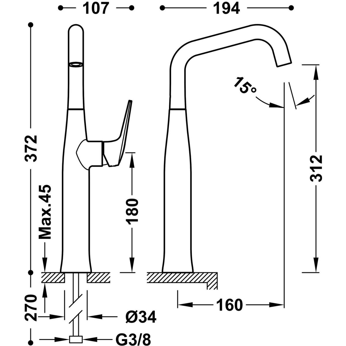 Tres Fuji Waschtischarmatur Stehend || 28184701OPM