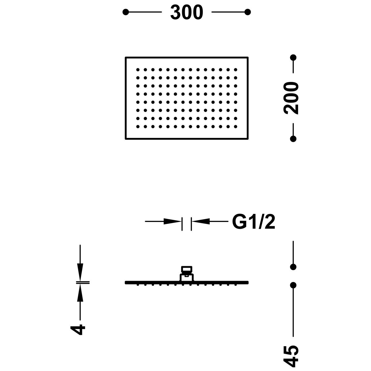 Tres Kopfbrause 30x20 cm rechteckig schwarz 134315007NM