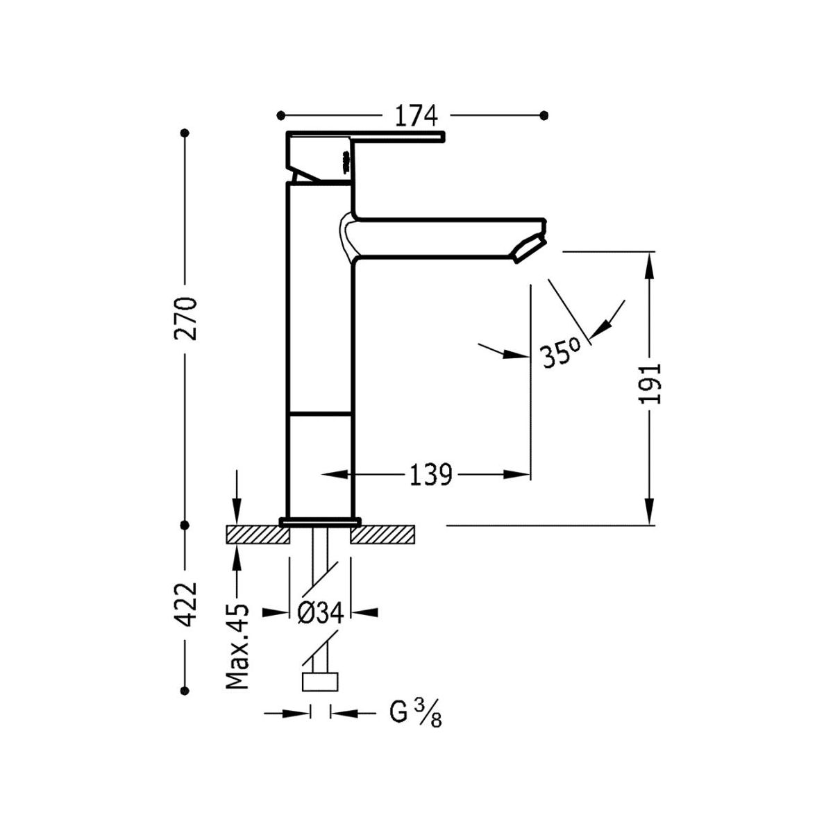 - Höhe der Armatur: 27 cm