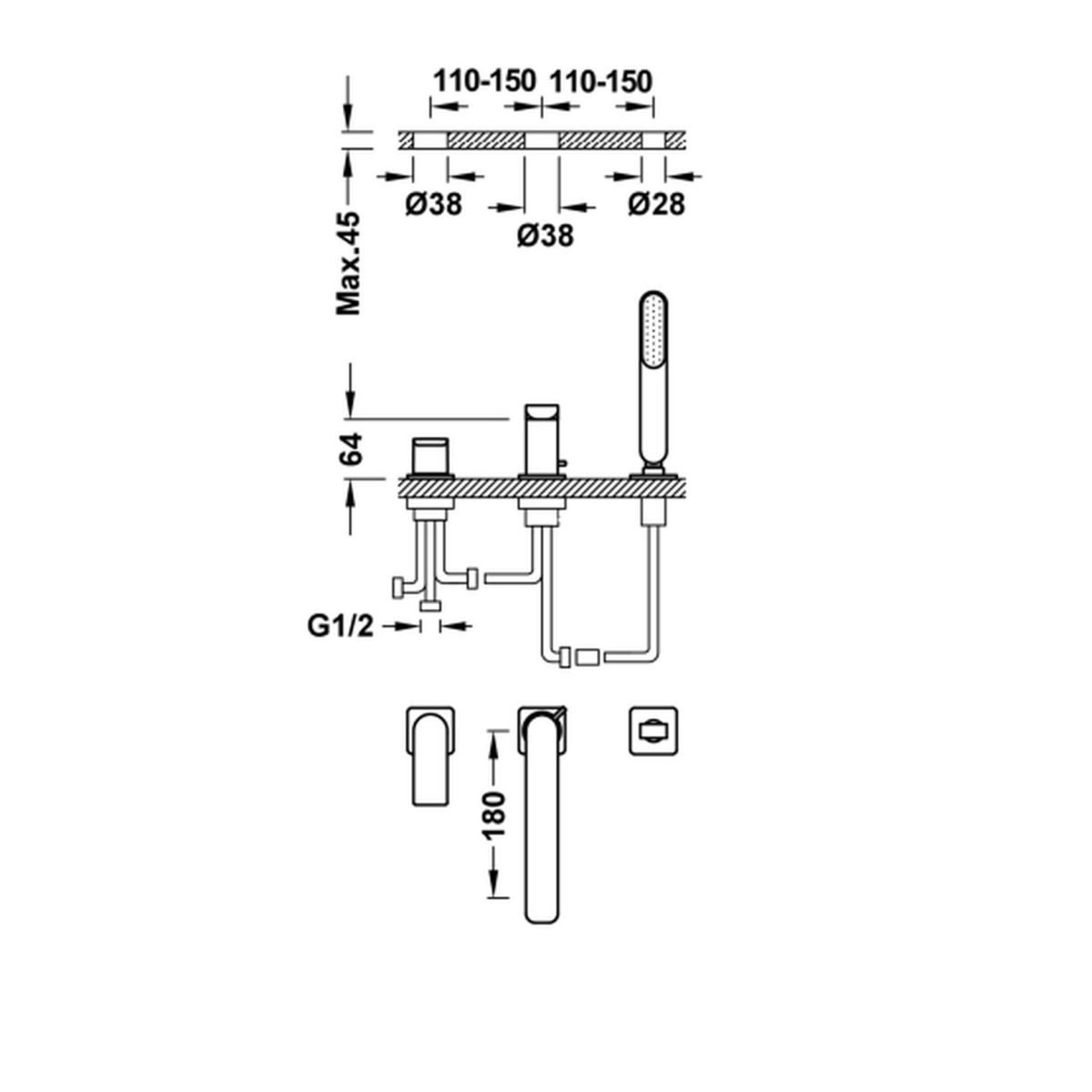 - Montageset für Armatur 203.245.01 separat erhältlich