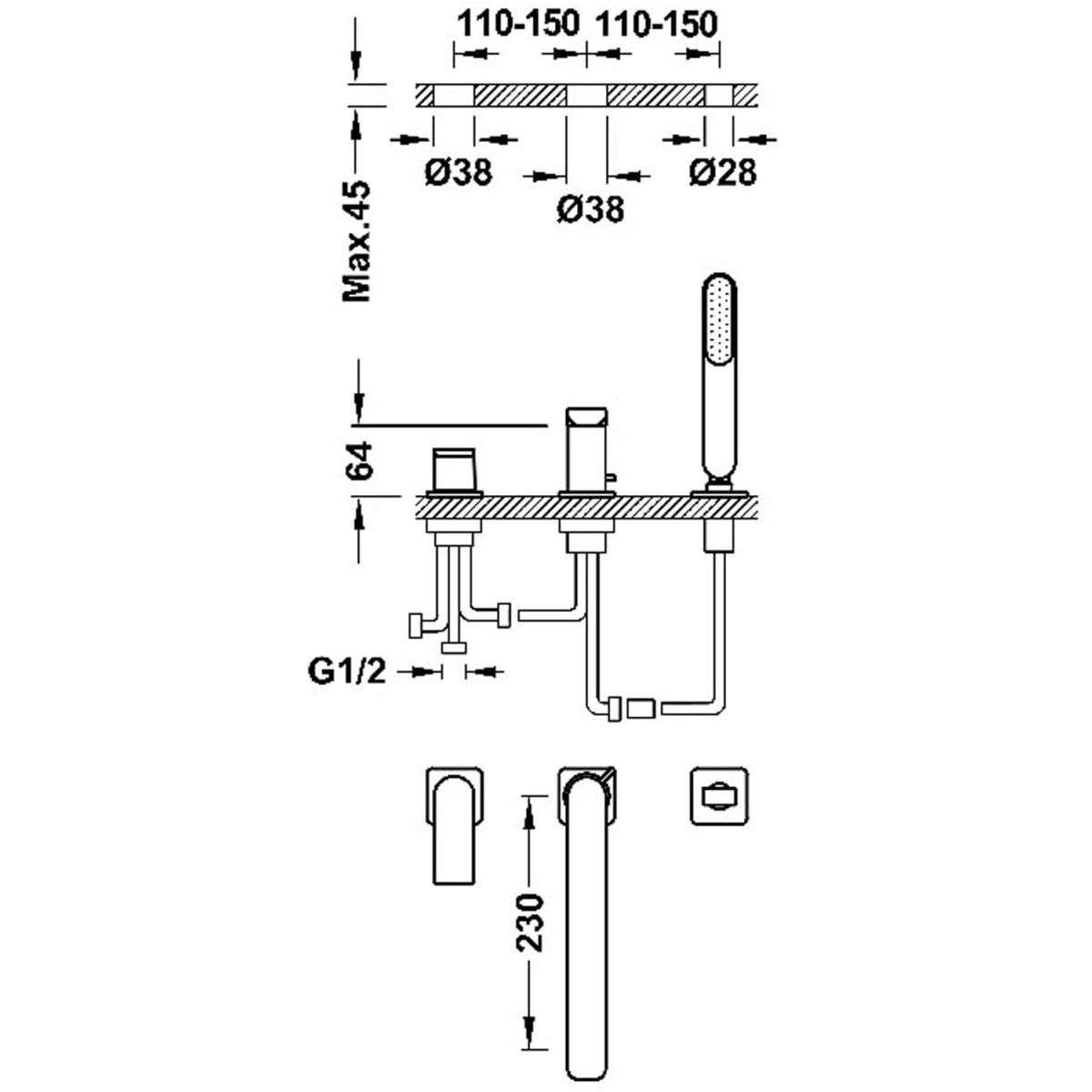- Montageset für Armatur 203.245.01 separat erhältlich