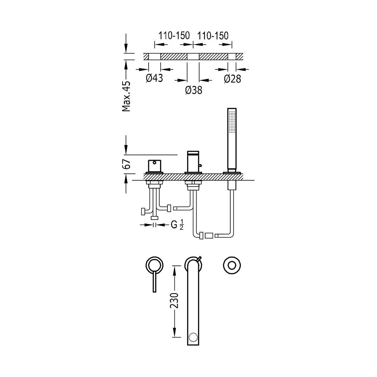 Tres Max-Tres Badewannen- und Duscharmatur awannenmontiert chrom 062.161.02