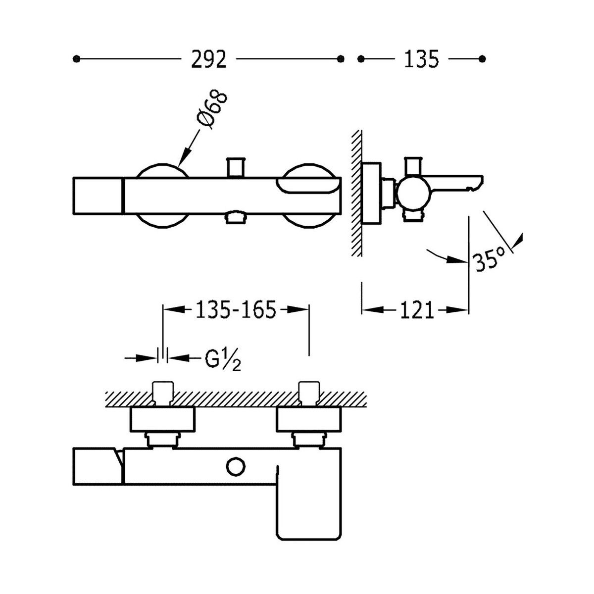 Tres Max-Tres Badewannen- und Duscharmatur Wandmontage chrom 061.170.01