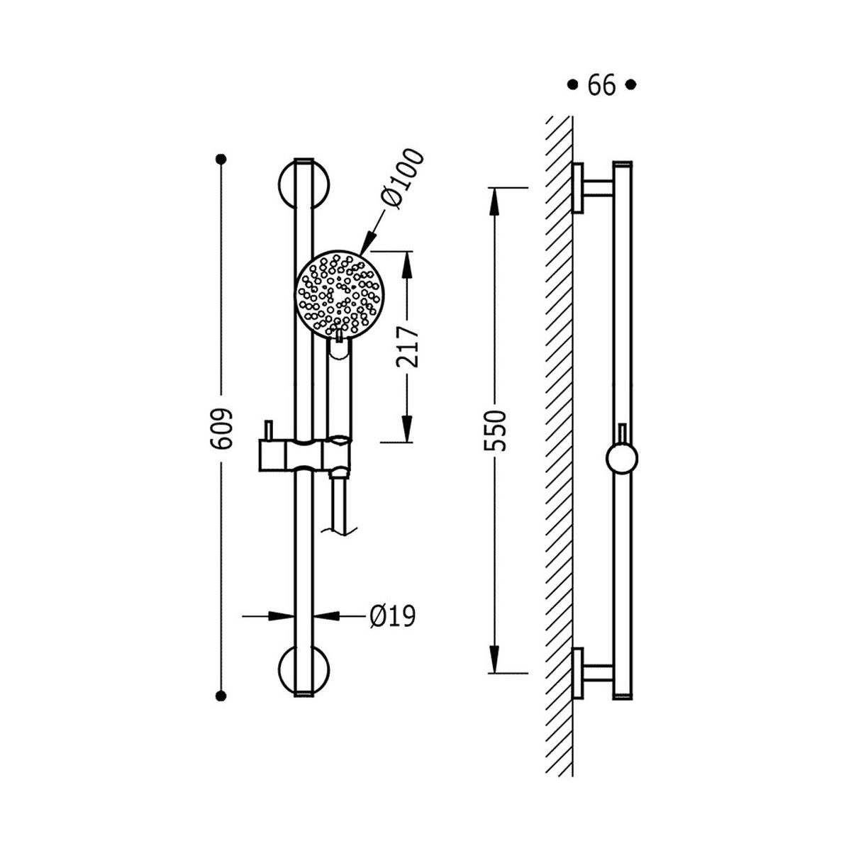 - Duschstange mit einem Durchmesser von 1,9 cm und einer Länge von 55 cm