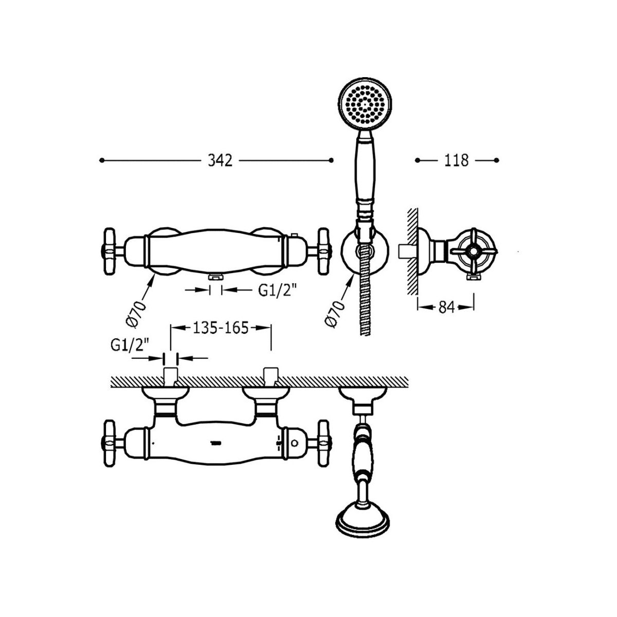 Tres Monoclasic Duschbatterie Wandmontage mit Thermostat gold 242.164.09.OR
