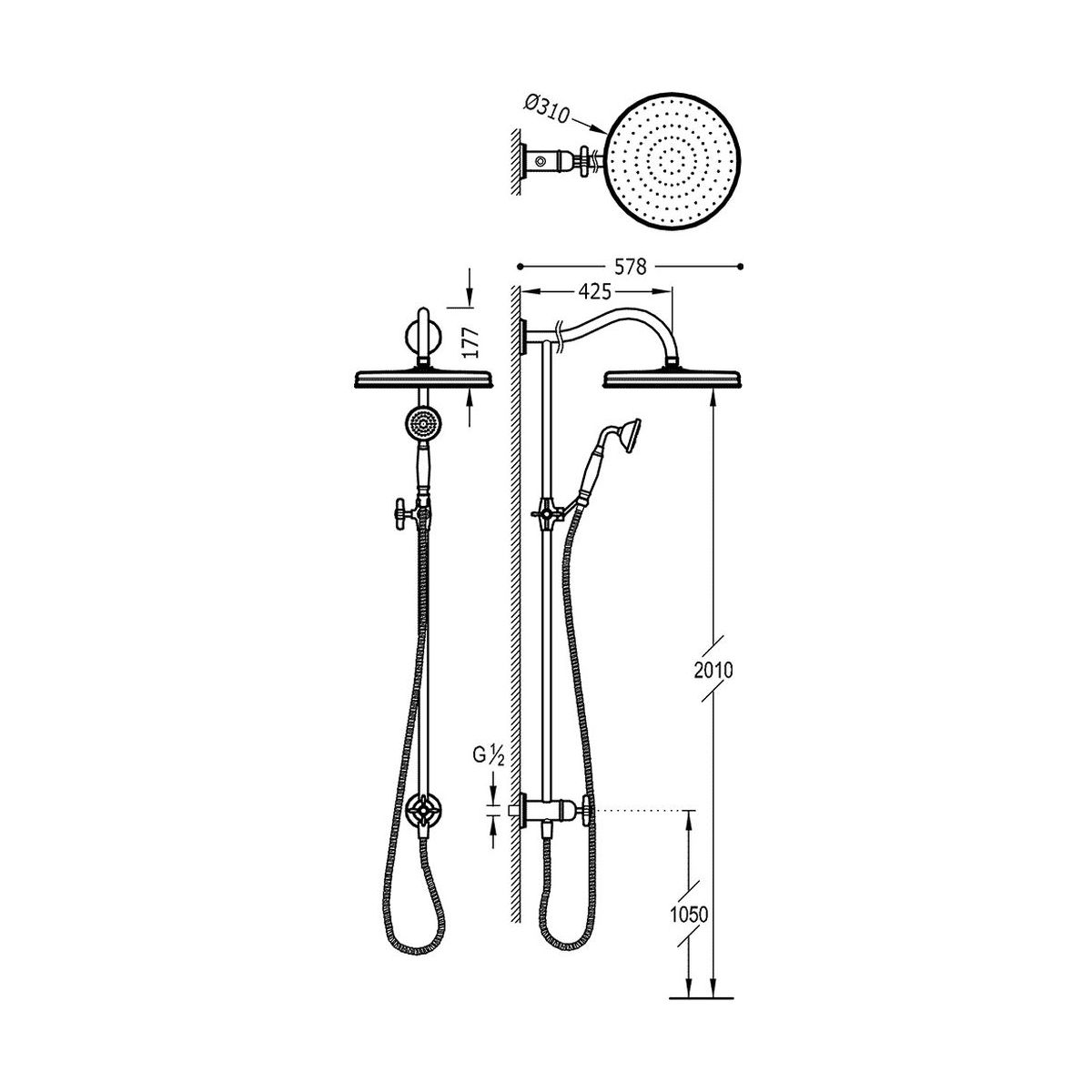 - Inbegriffen: Duschkopf, Duschkopf, Duschschlauch, Duschstange