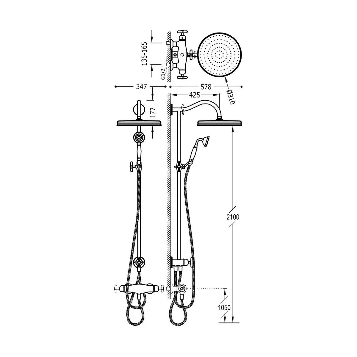 Tres Monoclasic Duschset Wandmontage mit Thermostat mit Regenbrause || 242.195.01.AC