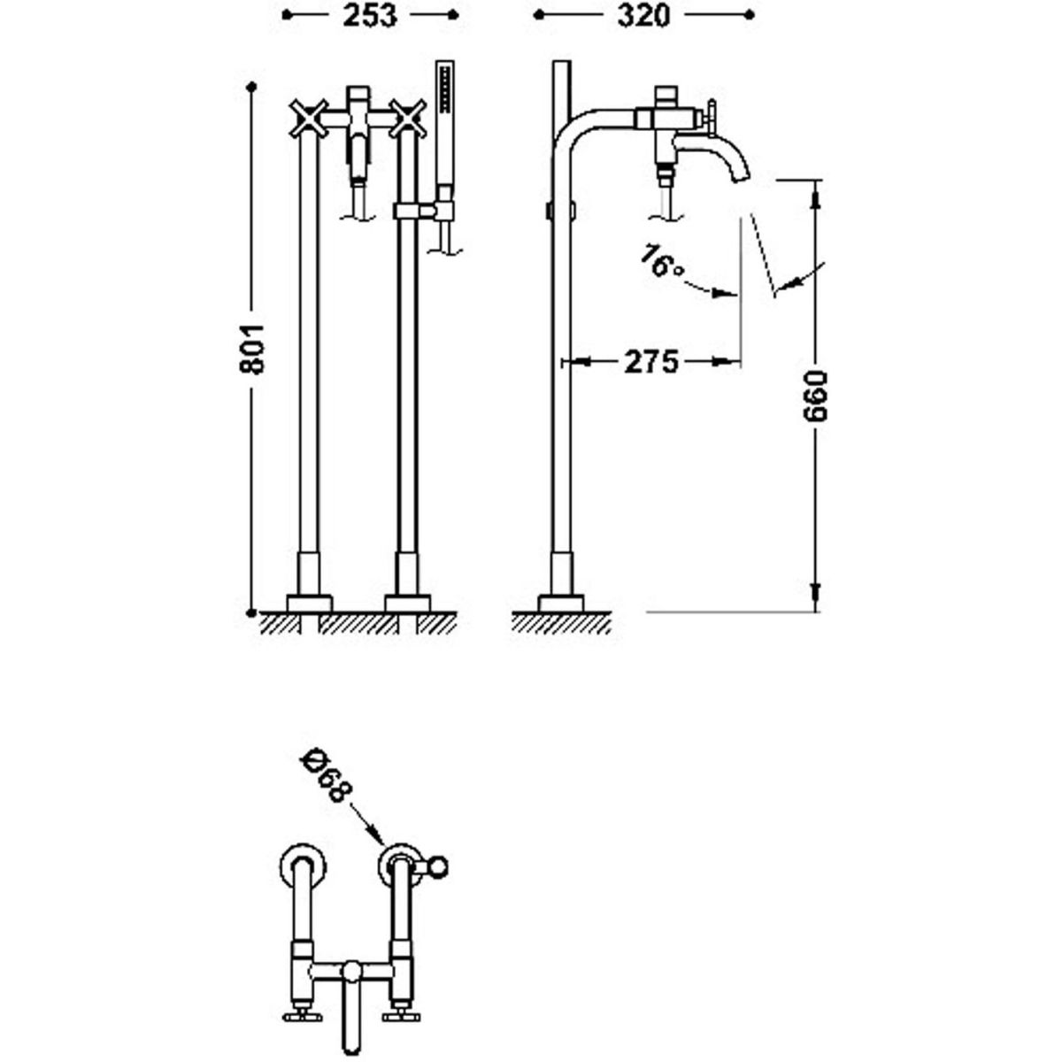 Tres Mont Blanc Badewannen- und Duscharmatur freistehend gold 28319401OM