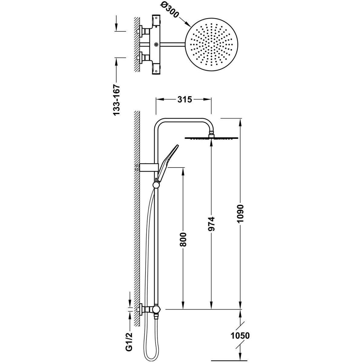 - drehbare Regendusche aus Edelstahl: Ø300 mm