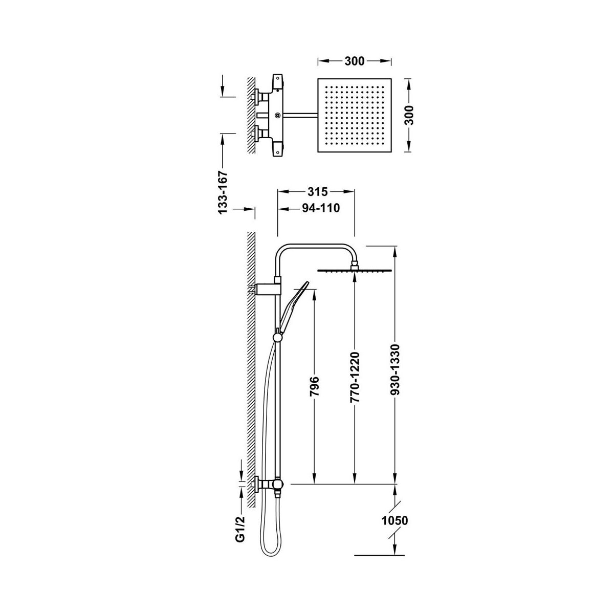- Drehbare Regendusche aus Edelstahl: 300 x 300 mm