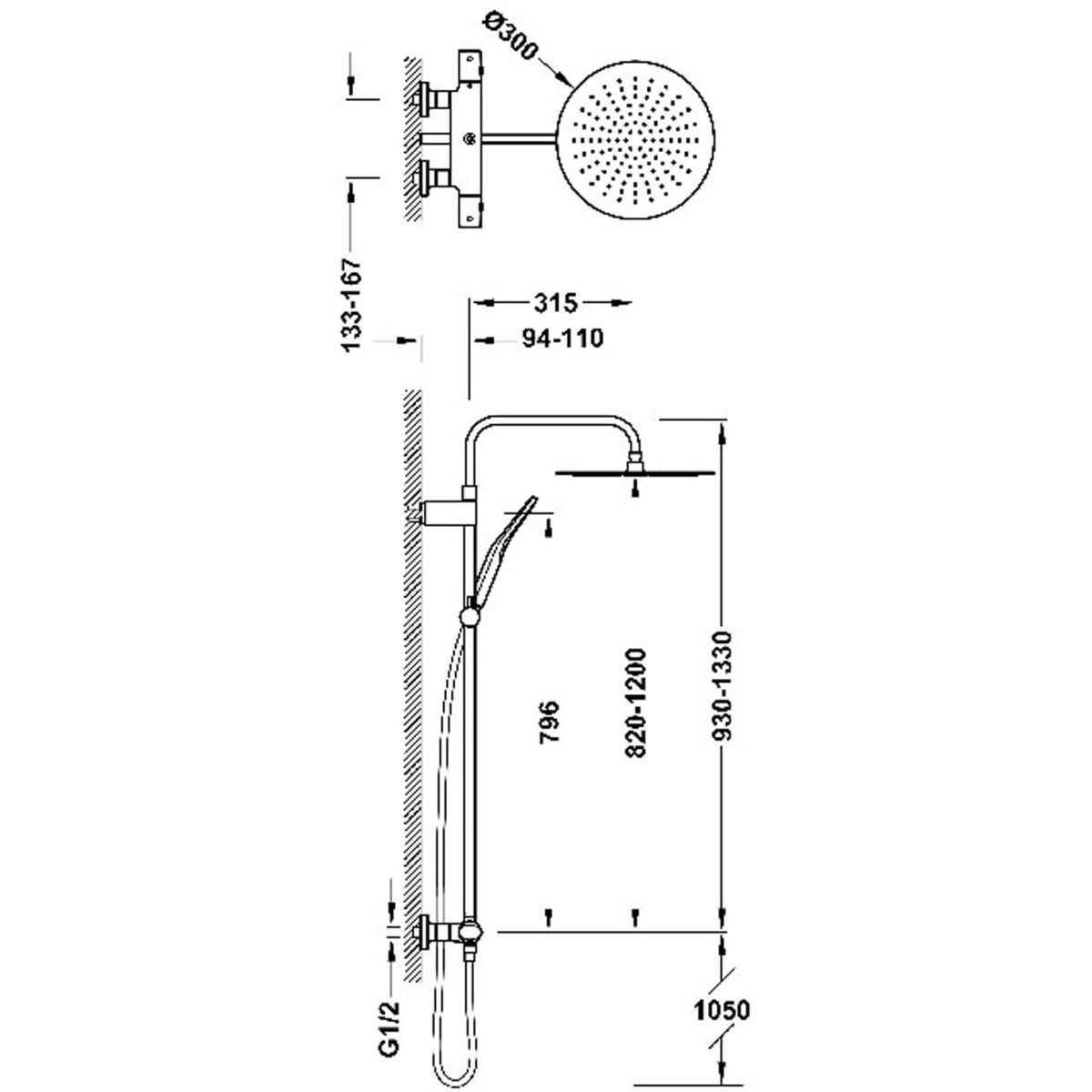 - drehbare Regendusche aus Edelstahl: Ø 30 cm