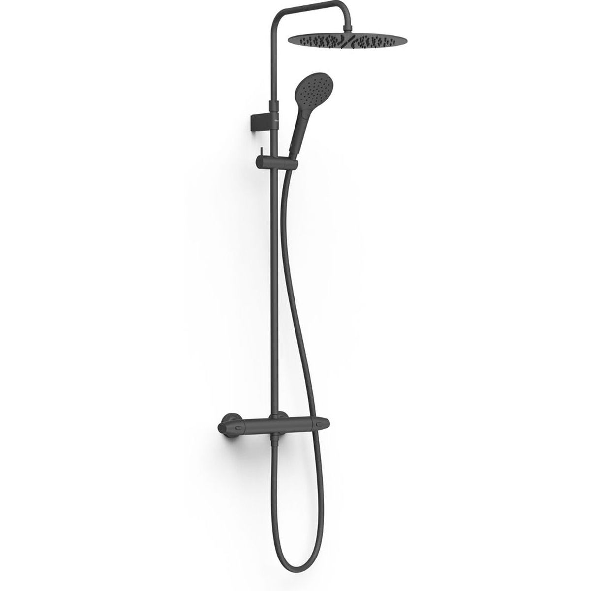 Tres Over-Wall Duschset Wandmontage mit Thermostat mit Regenbrause schwarz 19038705NM