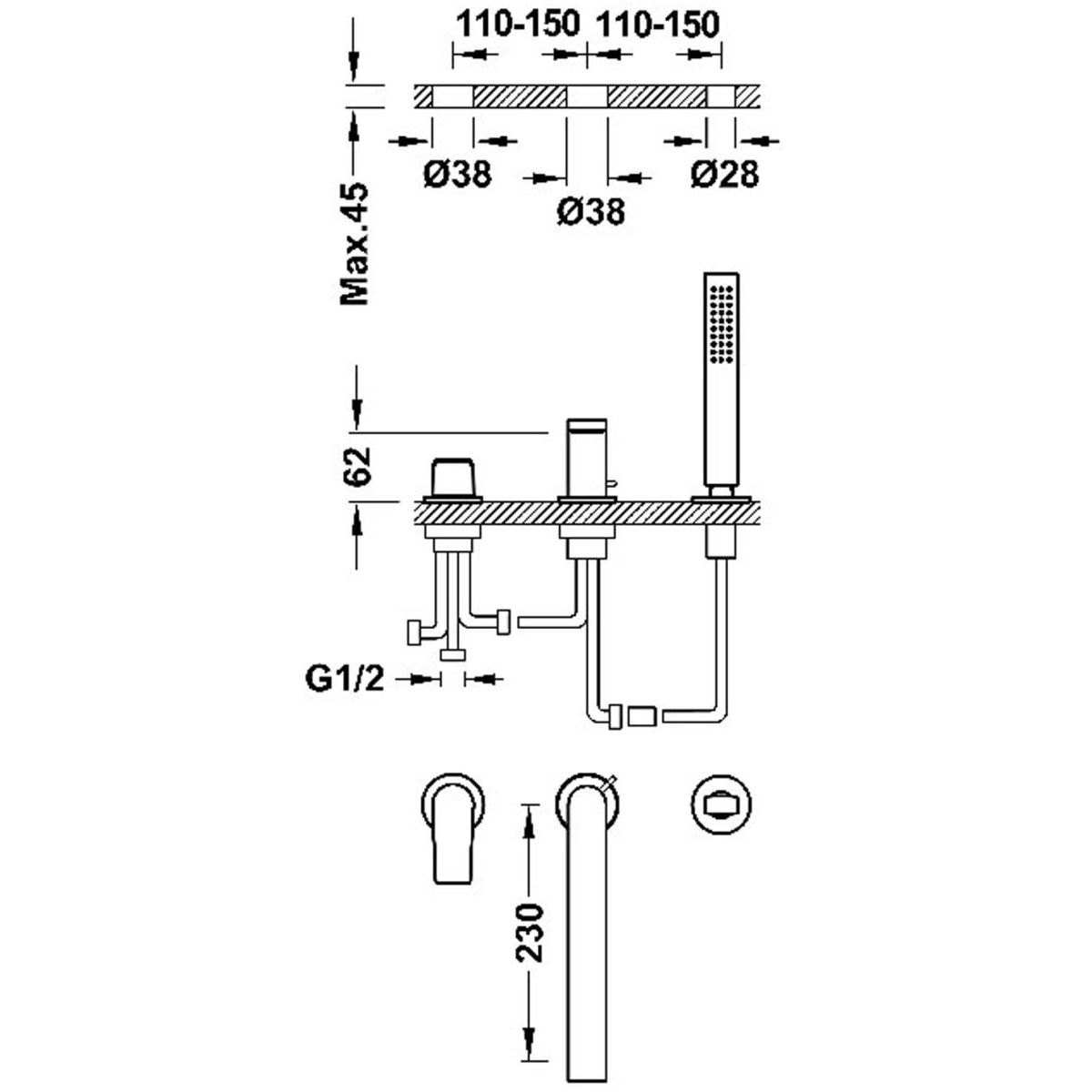 Tres Project Badewannen- und Duscharmatur awannenmontiert gold 21116103OM