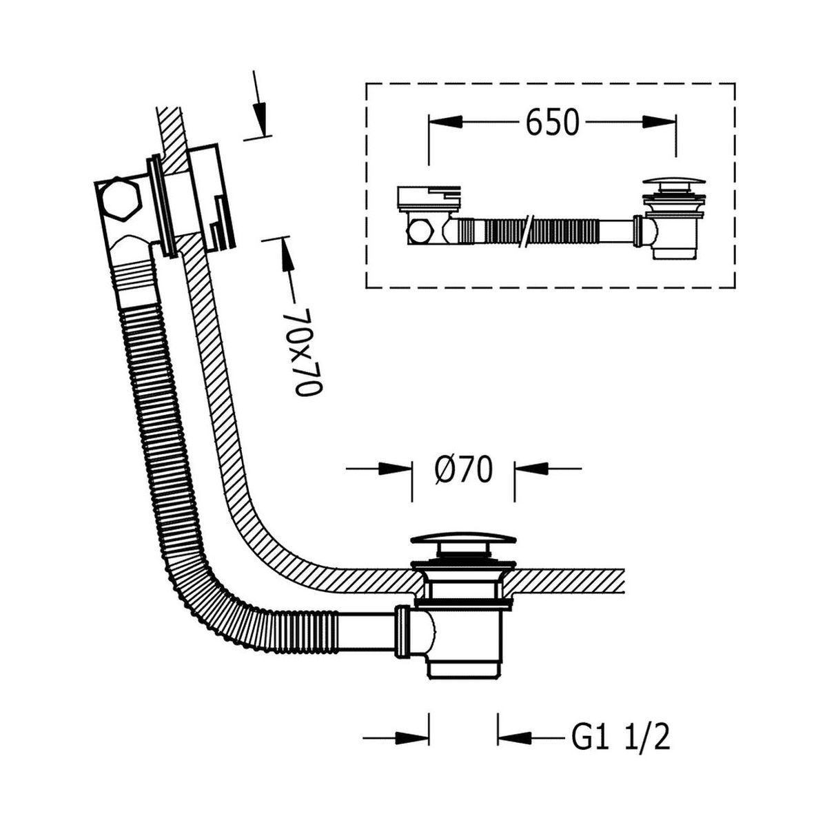 - Durchmesser des Abflussdeckels: 70 mm