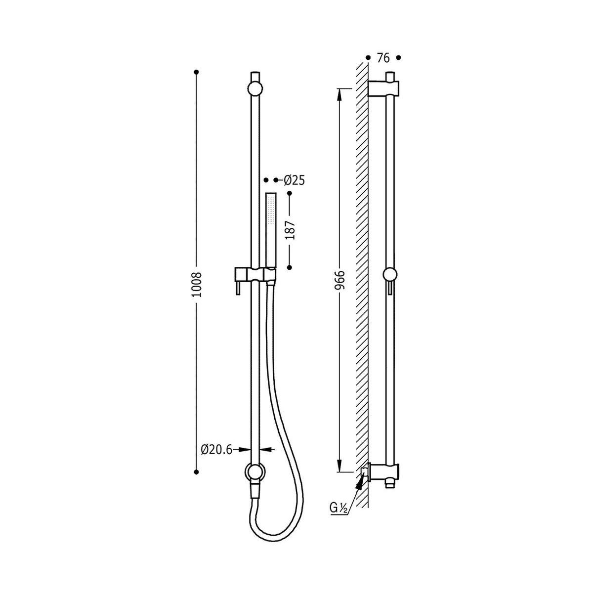 - Inbegriffen: Duschkopf, Duschschlauch, Duschstange