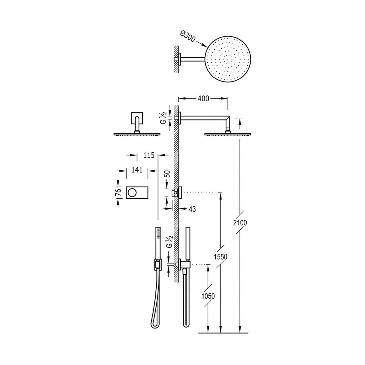- Inbegriffen: Batterie mit Schalter, Duschkopf, Duschkopf, Duschschlauch, Duscharm, Eckanschluss