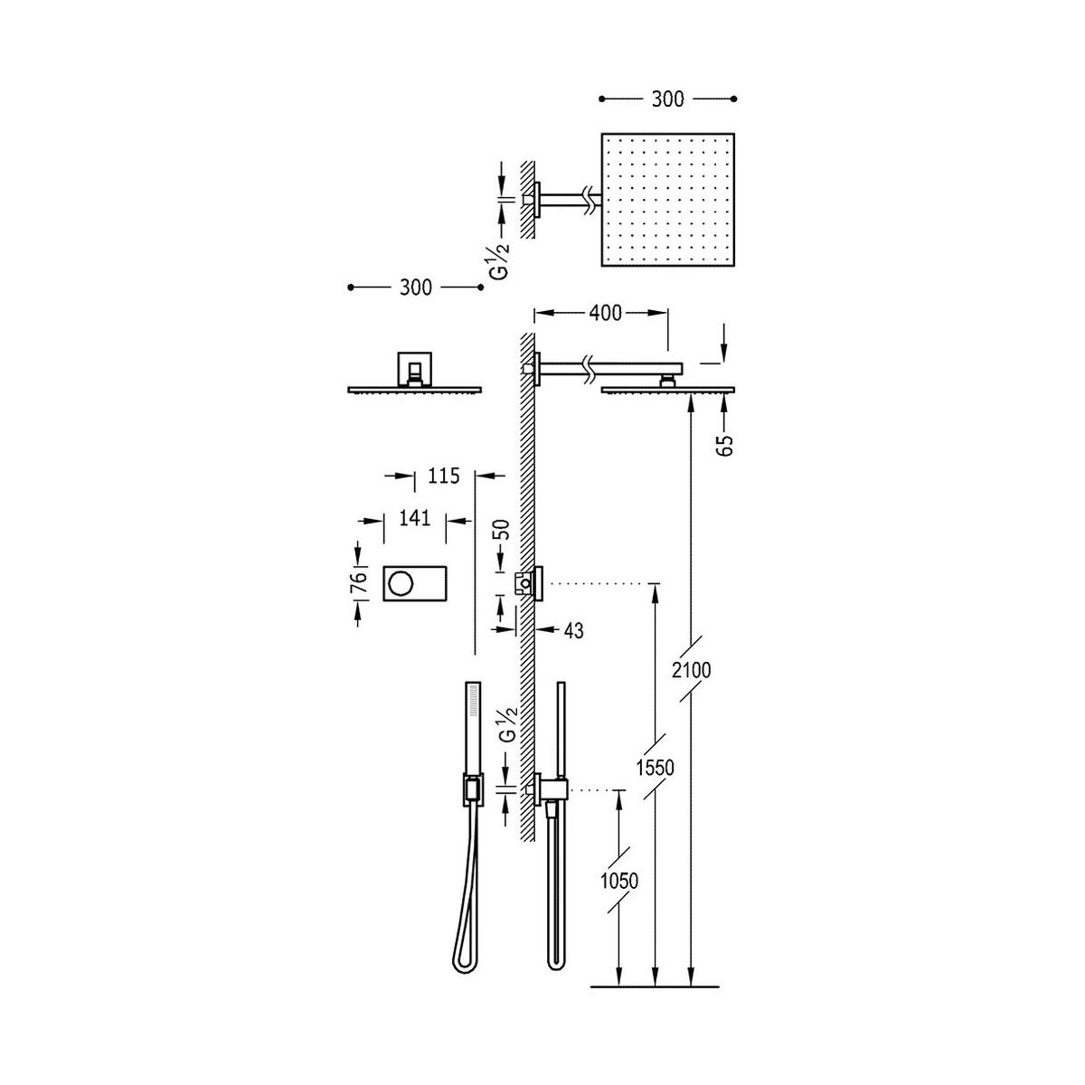 Tres Shower Technology Duschset Unterputz mit Thermostat mit Regenbrause chrom-weiß 092.865.63