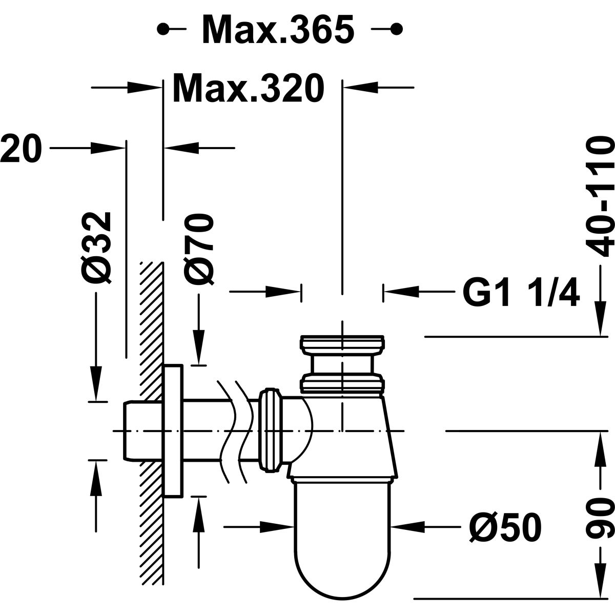 Tres Siphon für das Waschbecken flaschen gold 03463430OM