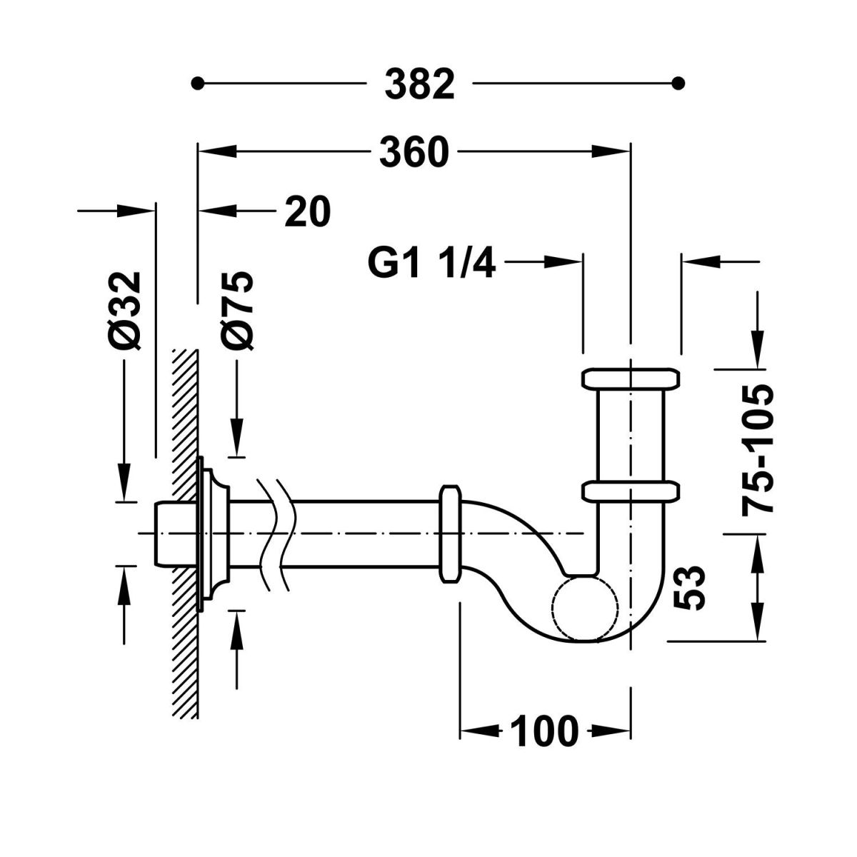 Tres Siphon für das Waschbecken Rohr gold 03463820OR