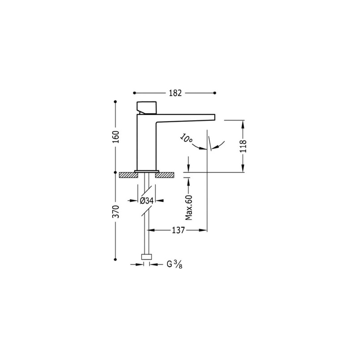 - Höhe der Armatur: 16 cm