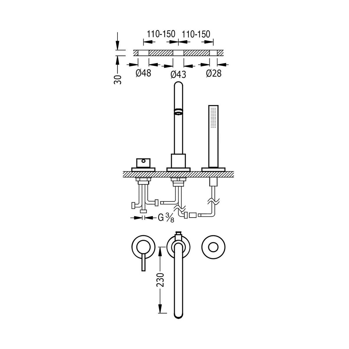 Tres Study Exclusive Badewannen- und Duscharmatur awannenmontiert chrom 262.150.01