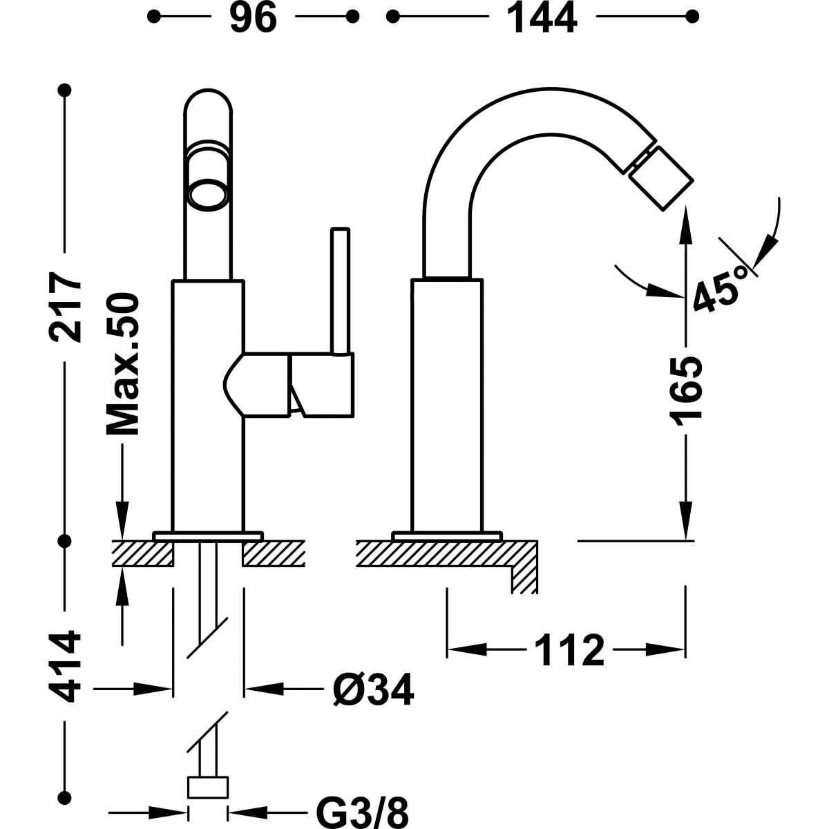 - Höhe der Armatur 21,7 cm