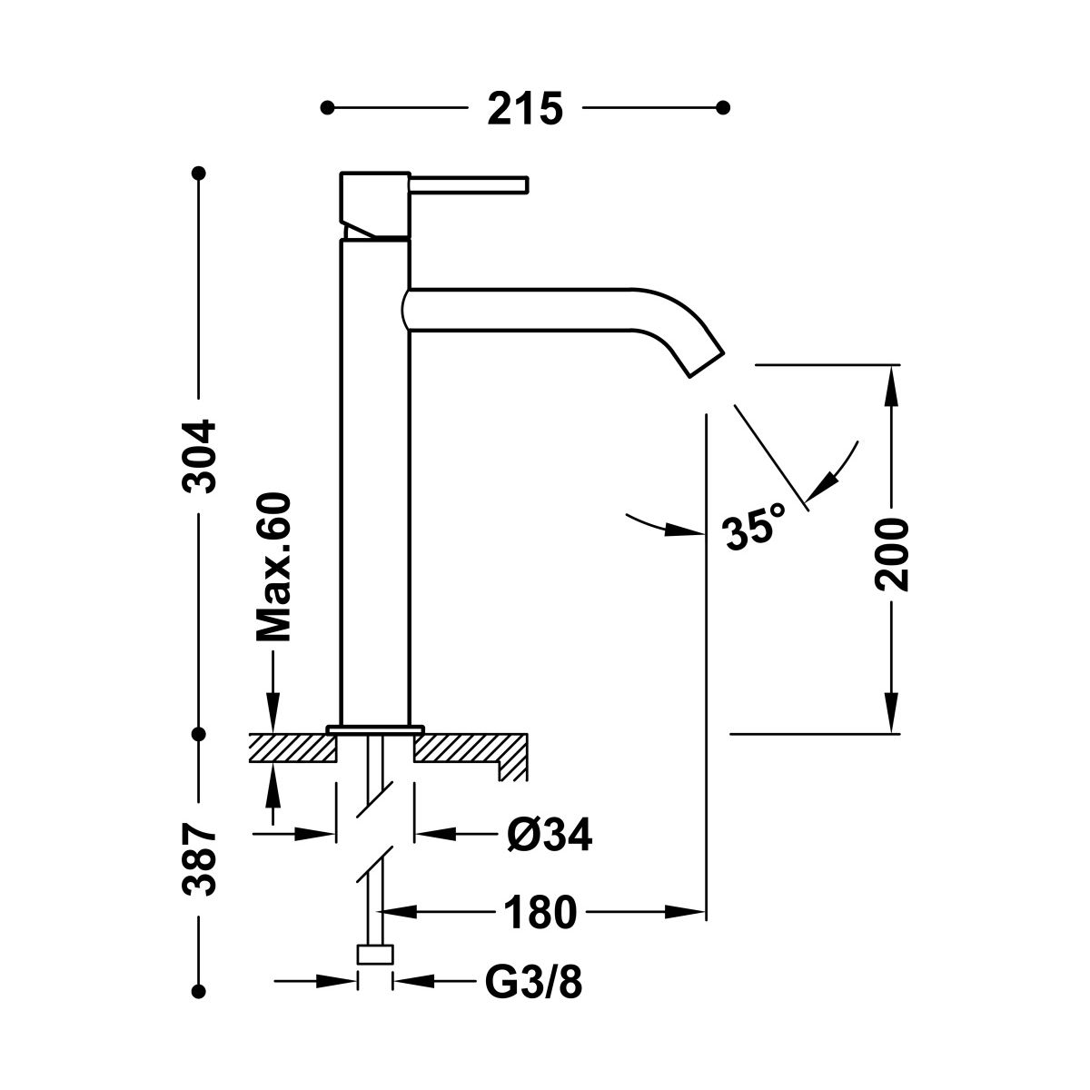 Tres Study Exclusive Waschtischarmatur Stehend schwarz 26230701NM