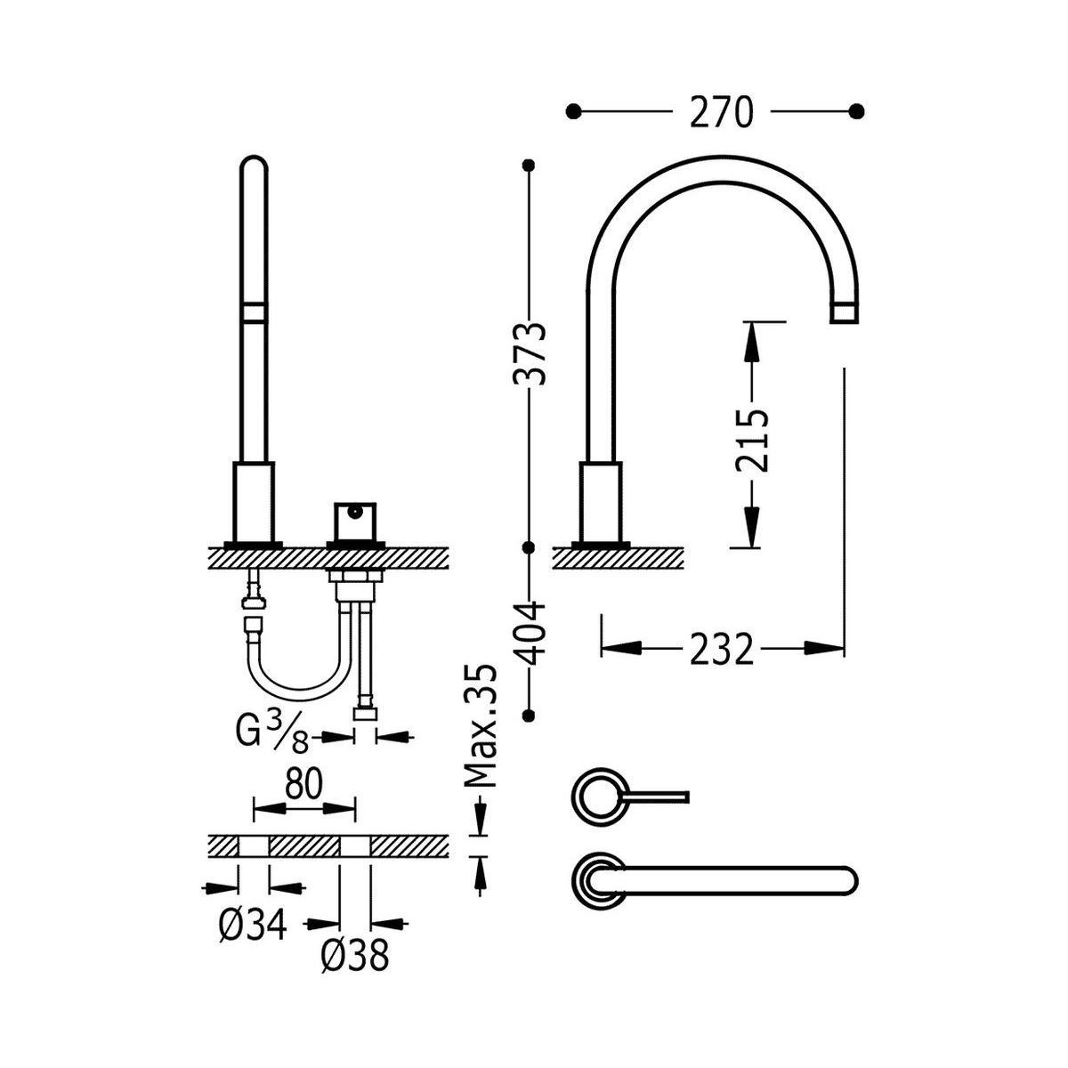 - Höhe der Armatur: 37,3 cm