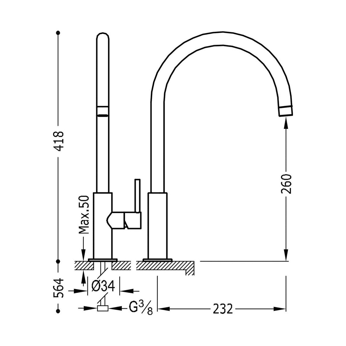 - Höhe der Armatur: 41,8 cm