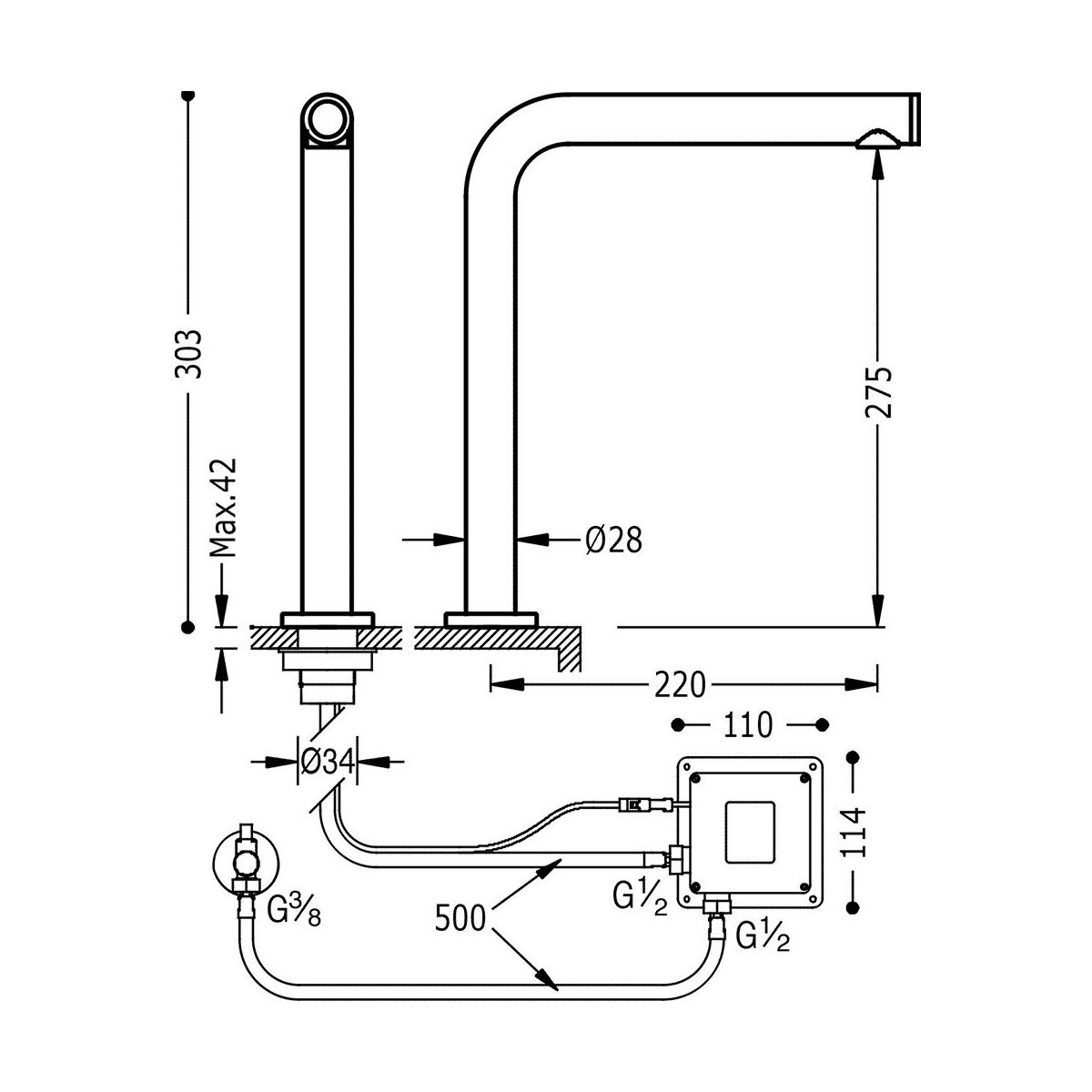 - Schwenkwinkel des Auslaufs: 180°
