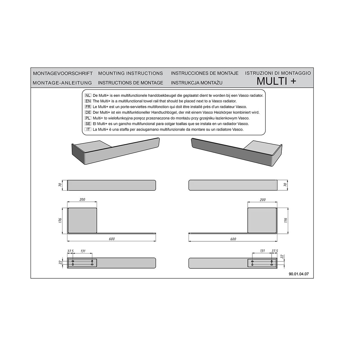 - Handlauf / Ablage für VASCO-Heizkörper