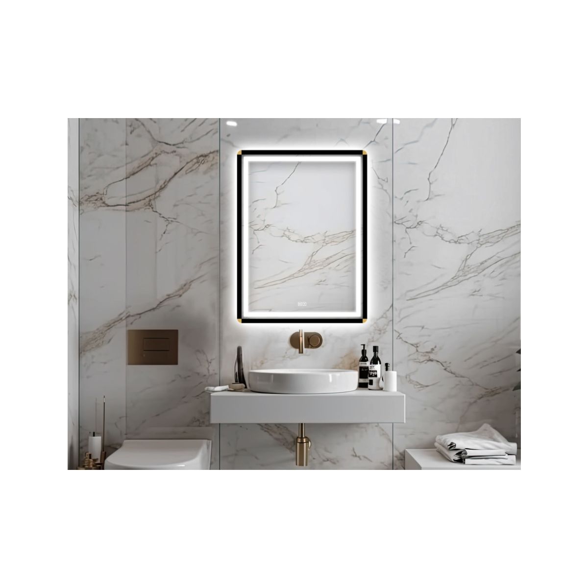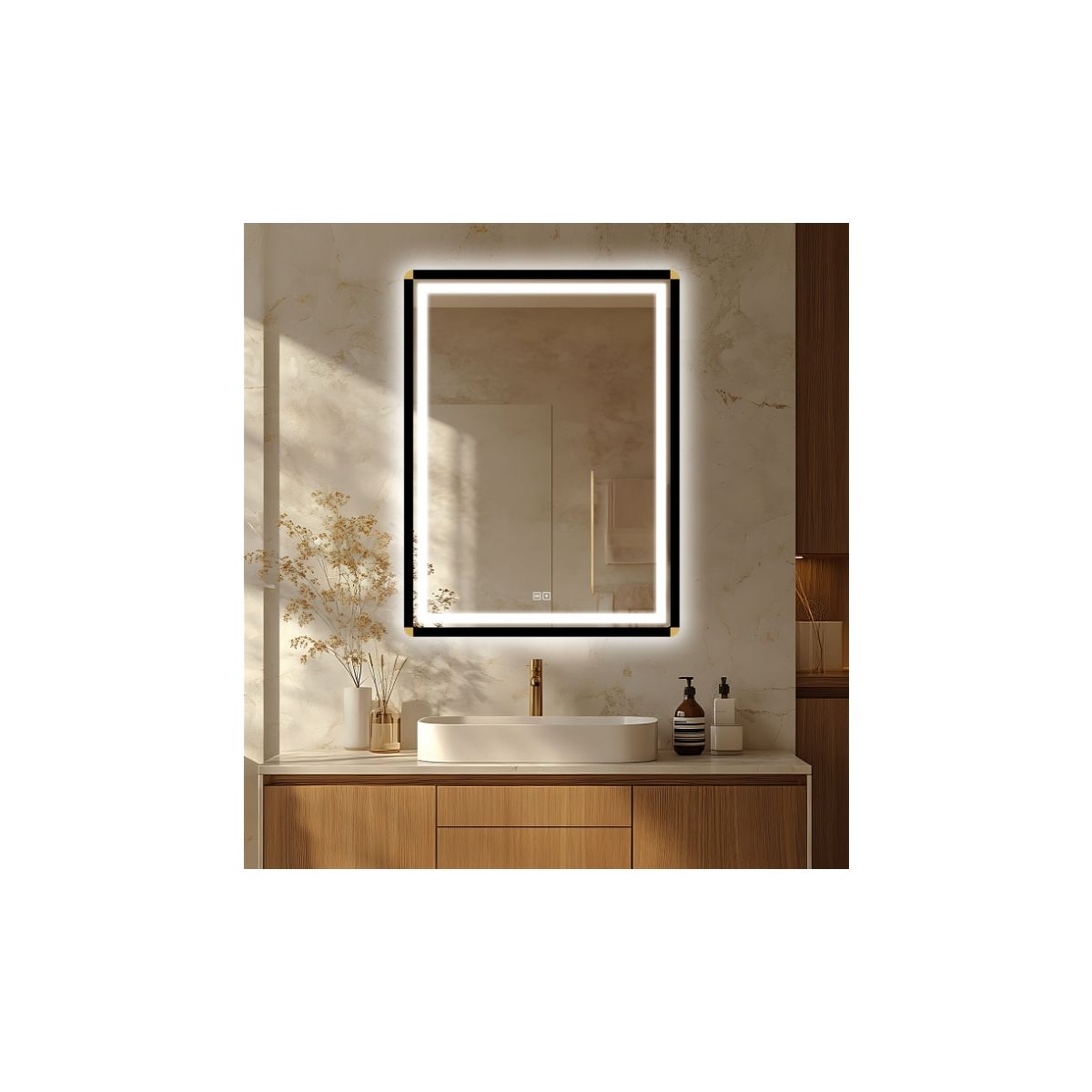 Venti Duo Spiegel 60x80 cm rechteckig mit Beleuchtung mit Spiegelheizung schwarz-gold 5905951180410