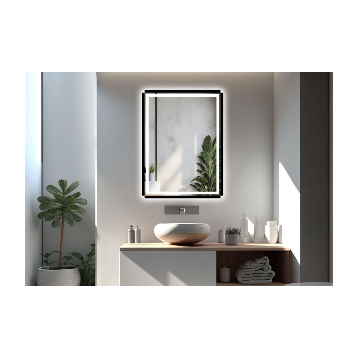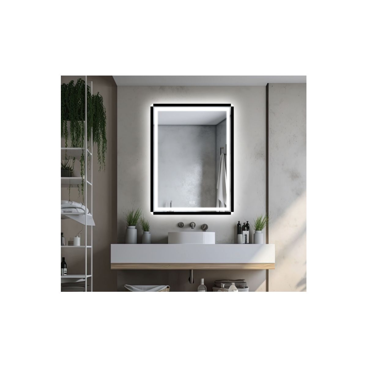 Venti Duo Spiegel 60x80 cm rechteckig mit Beleuchtung mit Spiegelheizung schwarz-weiß 5905951180434