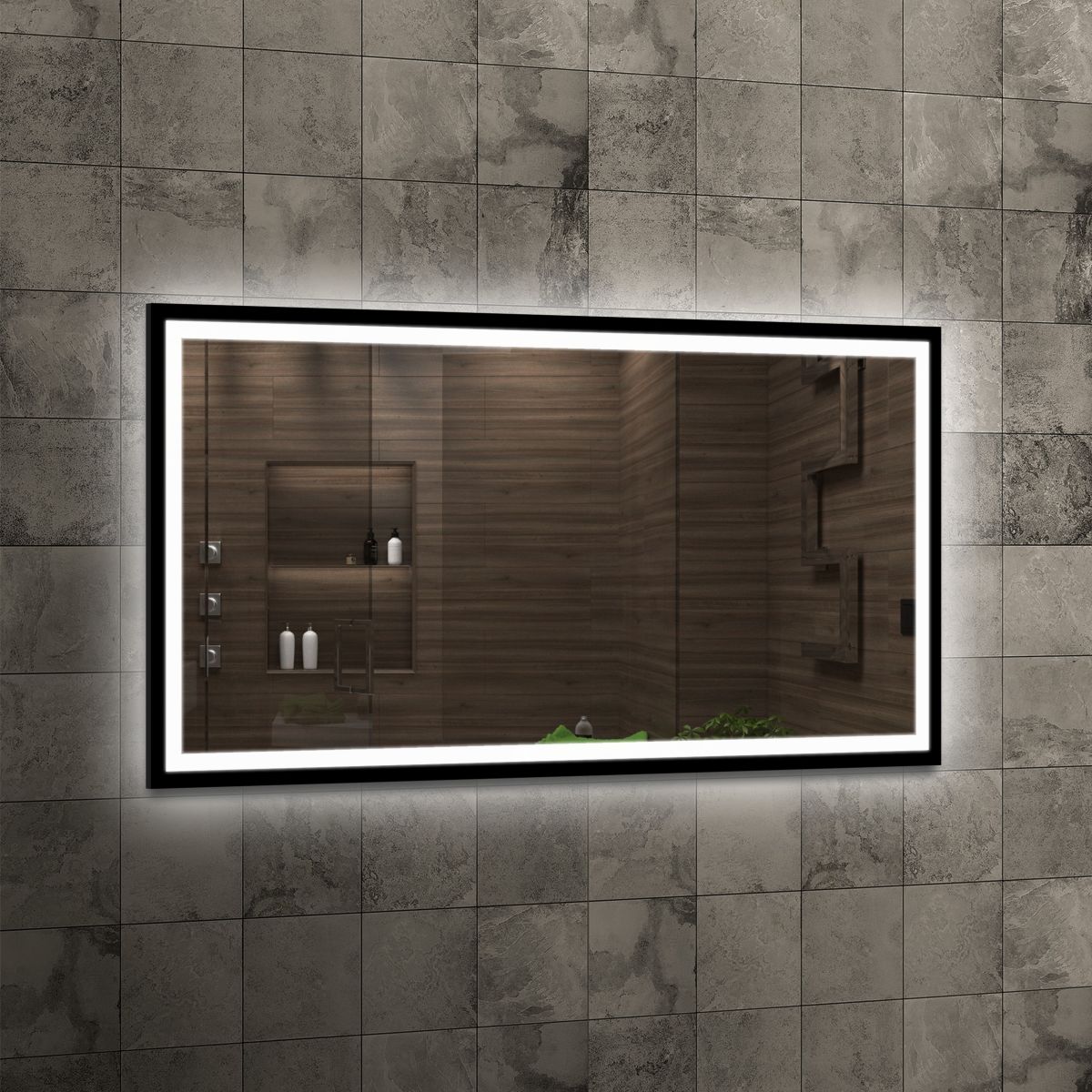 Venti Luxled Spiegel 120x60 cm rechteckig mit Beleuchtung schwarz 5907459662733