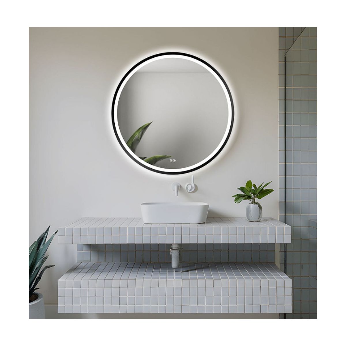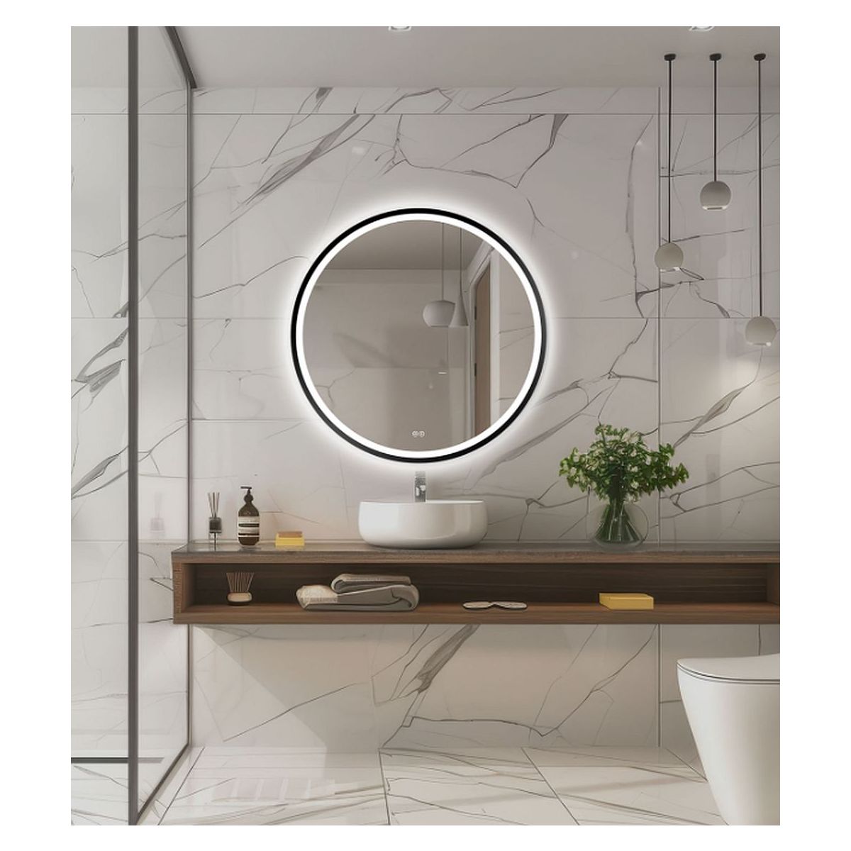 Venti Orion Black Spiegel 60x60 cm rund mit Beleuchtung schwarz 5905951180342