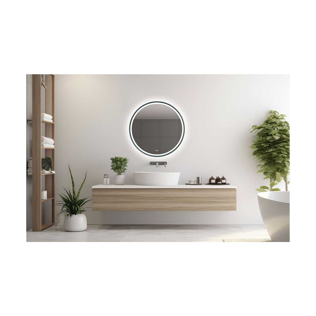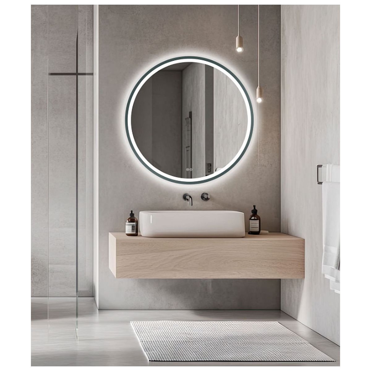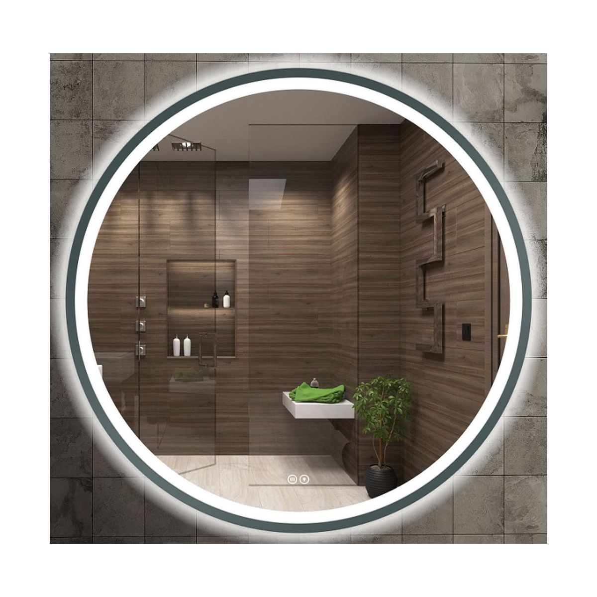 Venti Orion Graphite Spiegel 60x60 cm rund mit Beleuchtung mit Spiegelheizung graphit 5905951180373