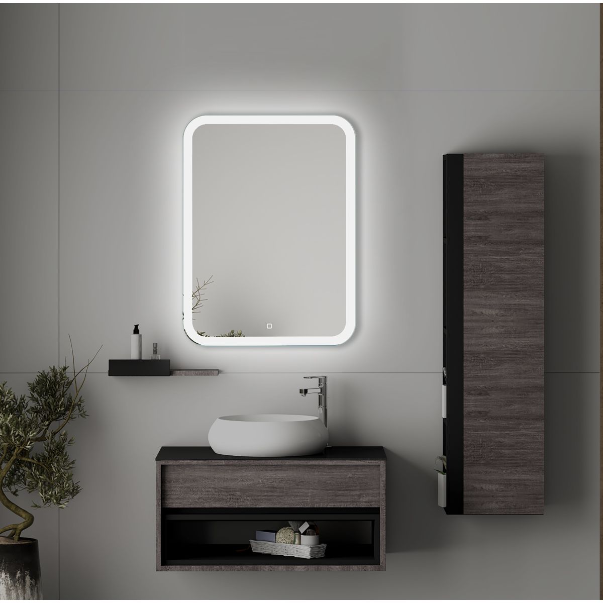 - rechteckiger Spiegel mit abgerundeten Ecken