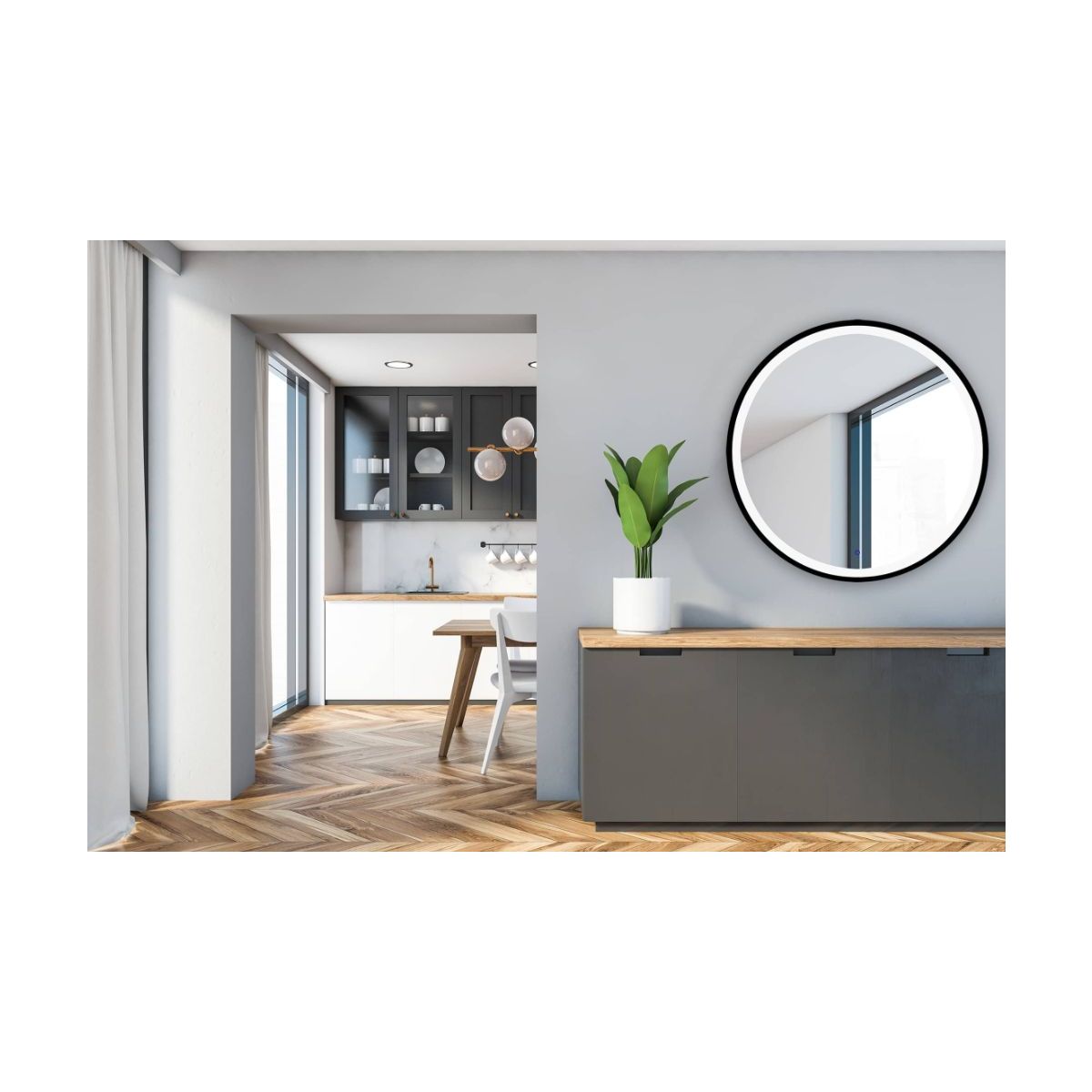 Venti Rund LED II Spiegel 90x90 cm rund mit Beleuchtung schwarz 5907459662672
