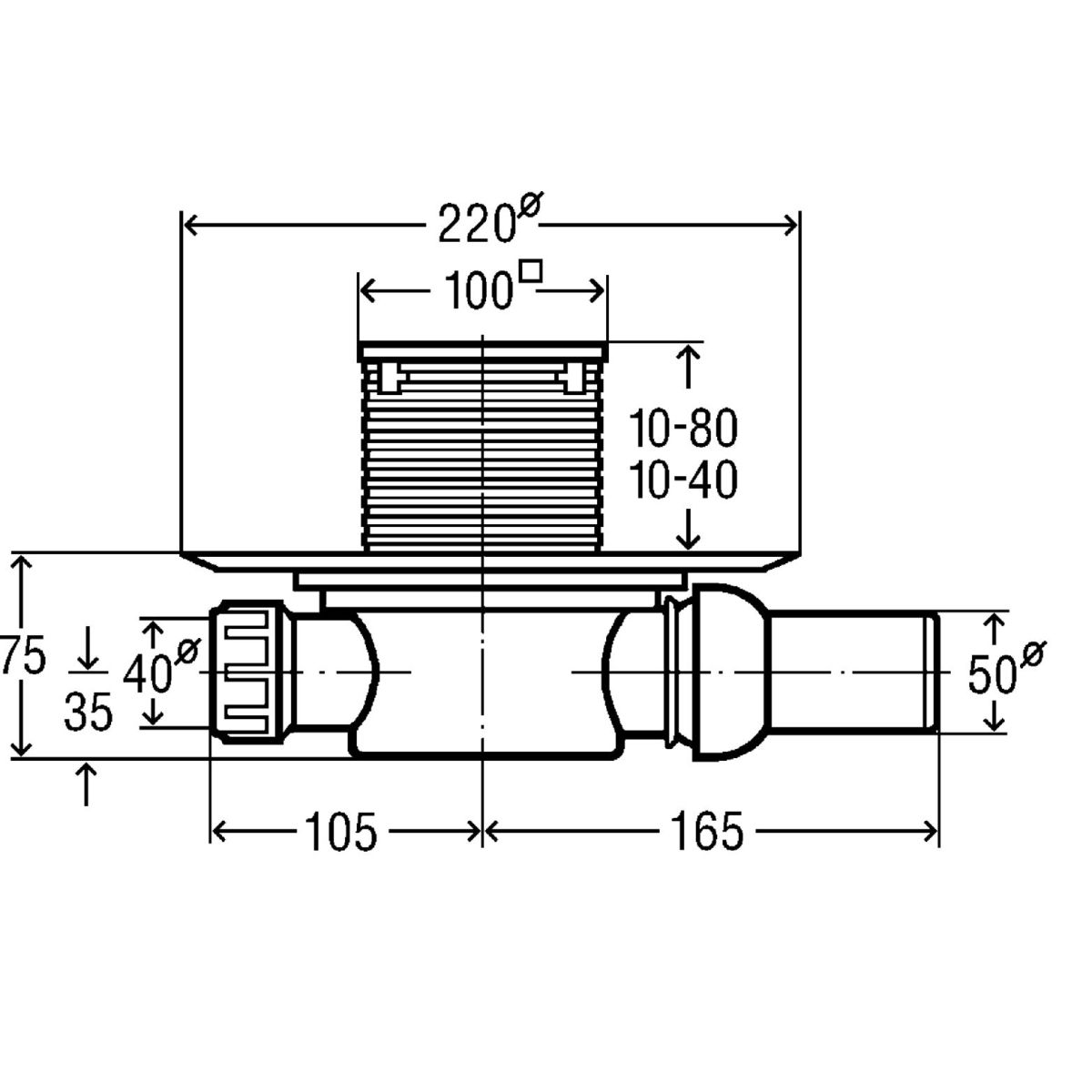 - Ablaufleistung bei einer Stauhöhe von 10 mm 0,33 l/s