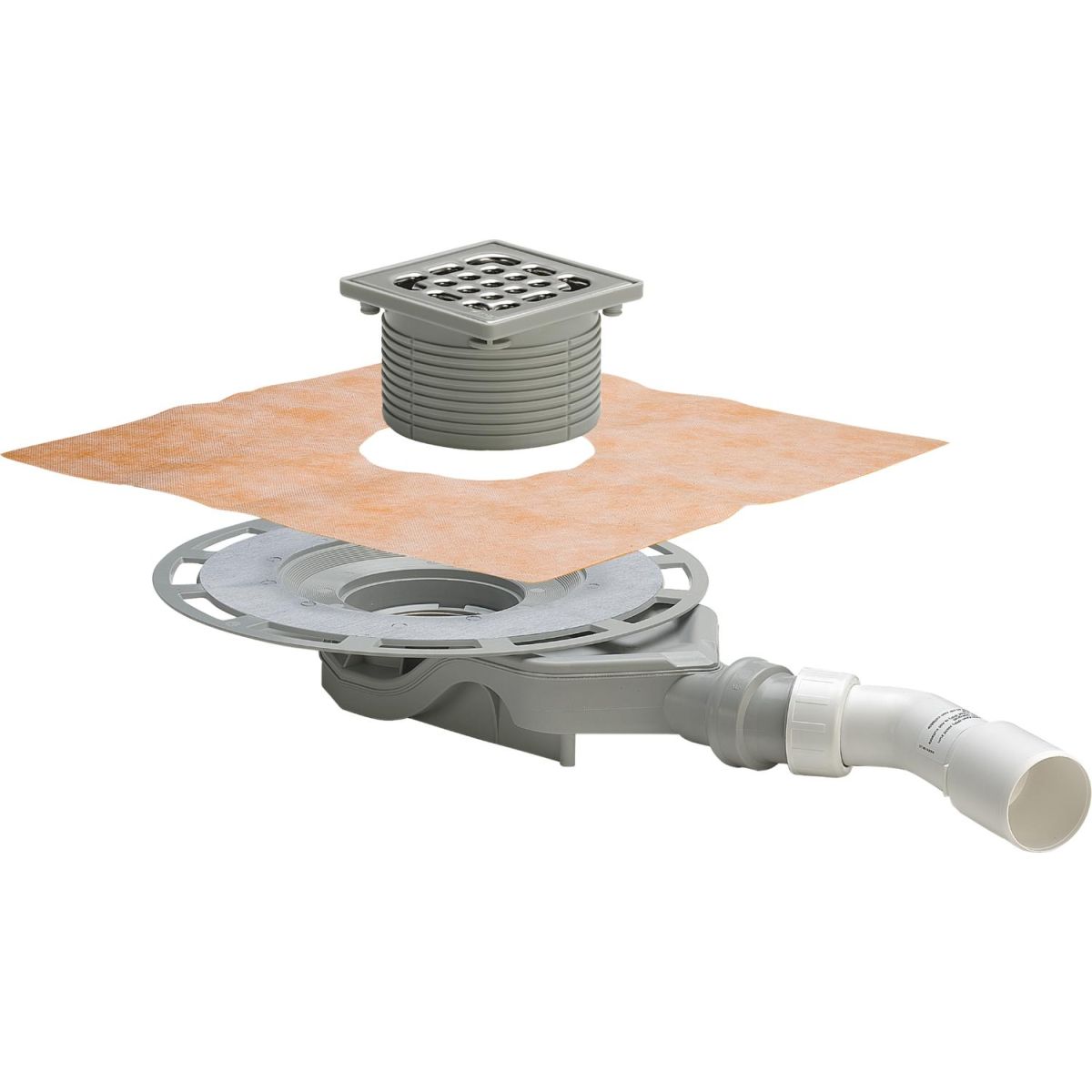 Bei diesem Ablaufmodell ist aufgrund der hohen Lage des Anschlussrohrs keine ausreichende Abdeckung mit Estrich möglich. Dies ist bereits in der Planungsphase zu berücksichtigen. Mögliche Lösungen unter Berücksichtigung der Fliesengröße und/oder des eventuellen Gewichts des Epoxidharzes sollten geplant werden!